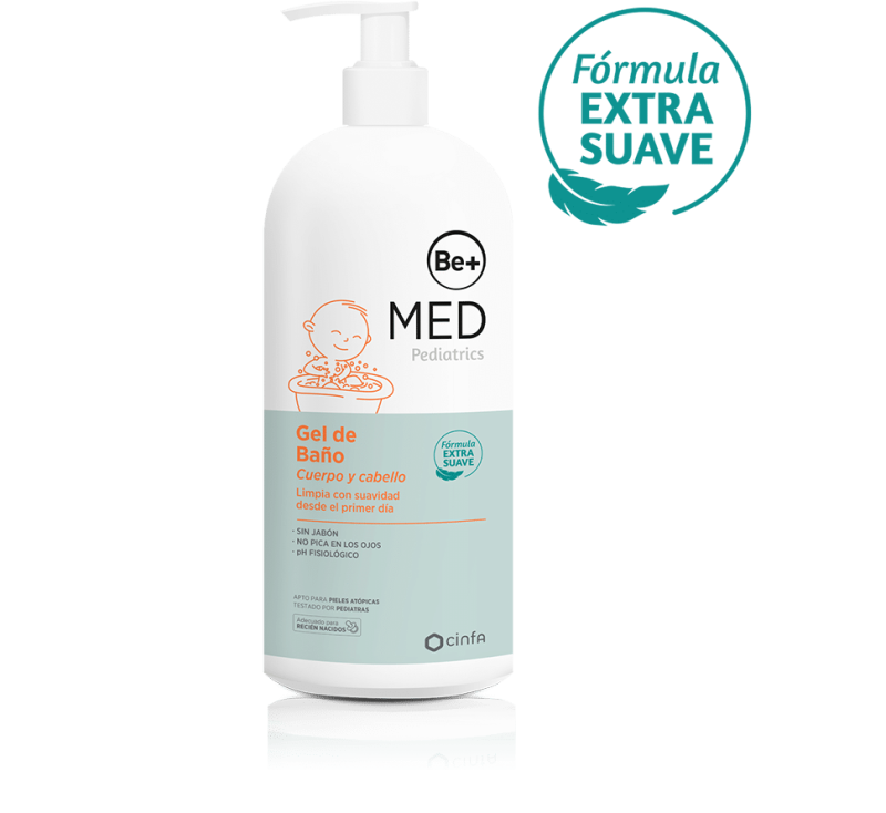 Cuerpo y cabello.\r\n\r\nLimpia con suavidad desde el primer día.\r\n\r\n· Sin jabón\r\n\r\n· No pica en los ojos\r\n\r\n· pH fisiológico\r\n\r\nAPTO PARA PIELES ATÓPICAS. TESTADO POR PEDIATRAS.\r\n\r\nAdecuado para recién nacidos.\r\n\r\nBe+ MED Pediatrics Gel de Baño limpia con suavidad, y gracias a la Pro-Vitamina B5 acondiciona la delicada piel y el cabello de bebés y niños. Su fórmula suave sin jabón contiene activos que compensan la acción secante del agua, respetando el equilibrio cutáneo y capilar de las pieles más frágiles, evitando la sequedad.\r\n\r\nGel suave y ligeramente espumante de fácil aclarado. Aroma relajante y placentero. No pica en los ojos.\r\n\r\nCONSEJOS DE UTILIZACION\r\n