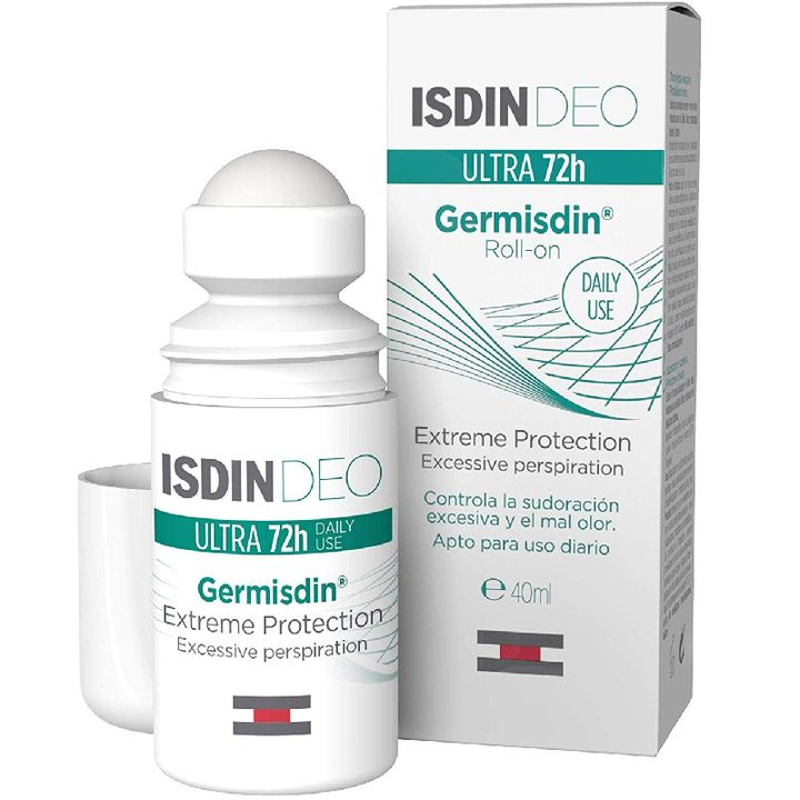 Germisdin Desodorante Ultra 72 h Roll on 40 ml. Es un desodorante antitranspirante para uso diario, que controla de forma eficaz la sudoración excesiva. Mantiene una protección eficaz durante 72 horas y evita el mal olor. Además, su fórmula no contiene alcohol.