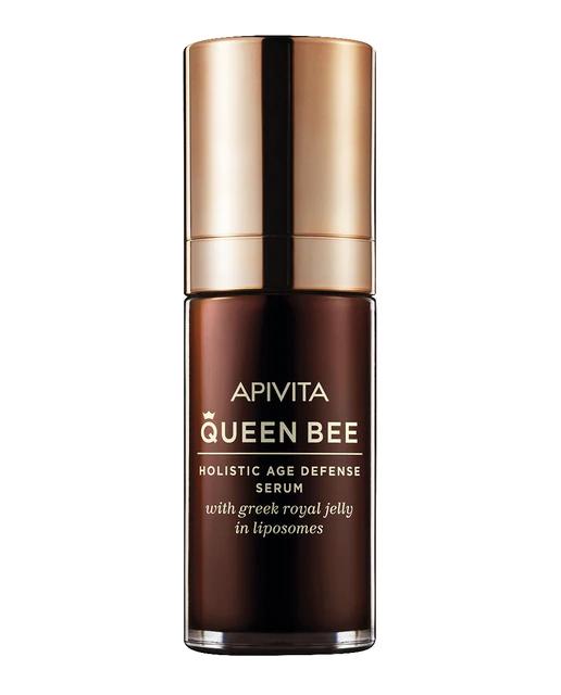 El Sérum Antienvejecimiento Holístico Queen Bee de Apivita está formulado con un 95% de ingredientes naturales, ofreciendo múltiples beneficios para la piel. Proporciona un efecto lifting, reduce las arrugas, reafirma, unifica el tono de la piel, ilumina e hidrata. Este sérum de alta eficacia y tecnología avanzada cuenta con una fórmula mejorada que proporciona una acción reafirmante intensiva como un paso esencial del tratamiento holístico antienvejecimiento. La jalea real griega encapsulada en liposomas acelera la regeneración de la piel, reduce las arrugas e incrementa la elasticidad y vitalidad de la misma. El extracto de lupino estimula la producción de colágeno, mejora la elasticidad de la piel y aporta un efecto lifting al contorno facial. El extracto de Ziziphus incrementa la elasticidad de la piel y redefine el óvalo facial. Además, el extracto de jara y el ácido hialurónico mejoran las defensas naturales y los niveles de hidratación. El extracto de Rabdosia rubescens previene la aparición de manchas oscuras y rojeces, aportando luminosidad y un tono de piel uniforme. La patente de extracto de propóleo ejerce una acción antioxidante, protegiendo del estrés oxidativo y los factores ambientales adversos. Los aceites esenciales orgánicos de rosa, mirra, olíbano y sándalo revitalizan y rejuvenecen la piel, mejorando también el estado de ánimo. En la línea Queen Bee, Apivita ha sustituido el agua por una infusión de rosa silvestre griega orgánica procedente de Nymfaio, Florina, que posee un elevado contenido de polifenoles y potencia el efecto antioxidante de los productos.